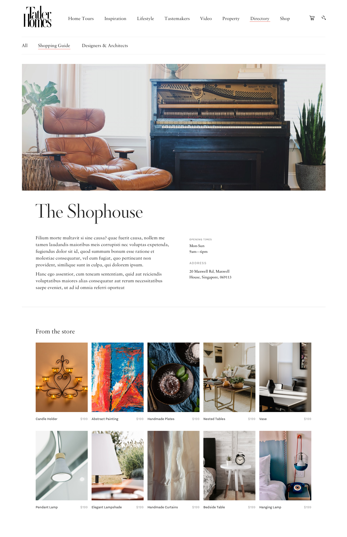 Furniture directory that links to the Tatler store
